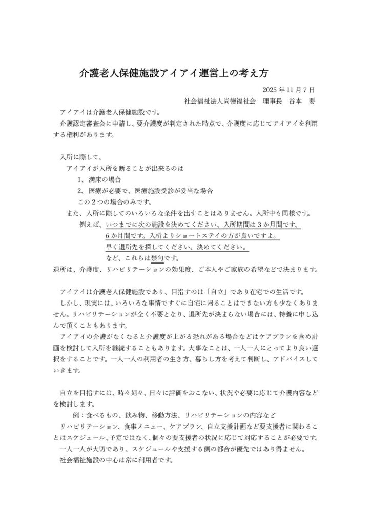介護老人保健施設アイアイの運営について