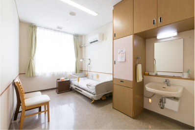 各居室にエアコンが1台(二人部屋は2台)、洗面台では温水、冷水が使用出来ます。 又、収納も多くご用意しております。 ご家族の方も必要に応じて泊まることも出来ます。
