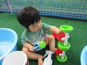 - 水遊びをしました☆ 「お水の上に浮いてるよ~!」