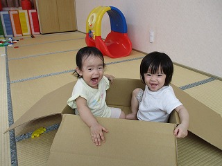 - 段ボールの中から「いないな~い・・・ばあ!」
