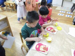 - お店屋さんごっこに向けハンバーガーづくり!「おいしいトマトにな~あれ♡」