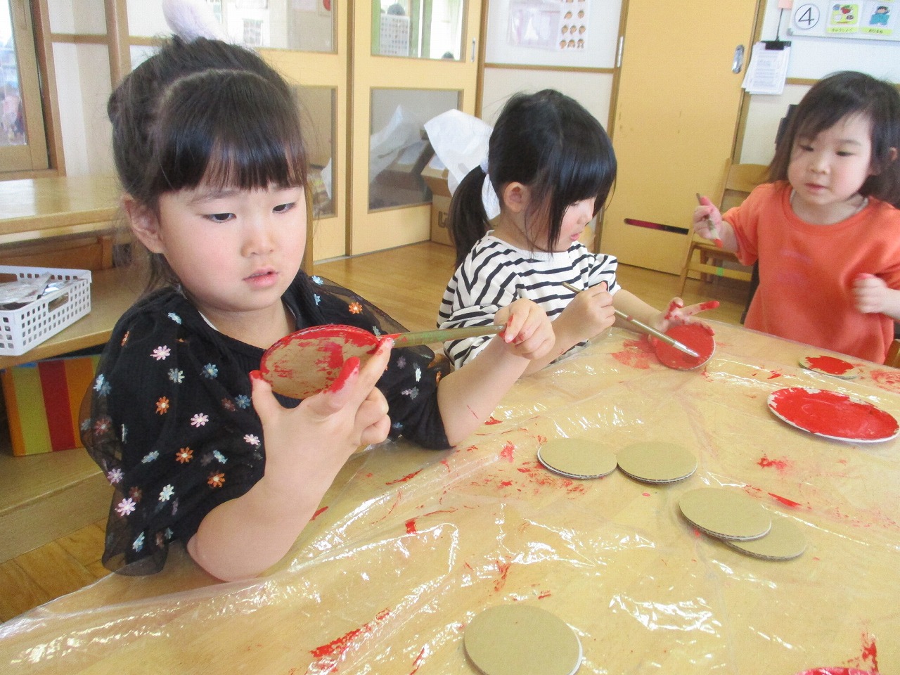 - お店屋さんごっこに向けハンバーガーづくり!「おいしいトマトにな~あれ♡」