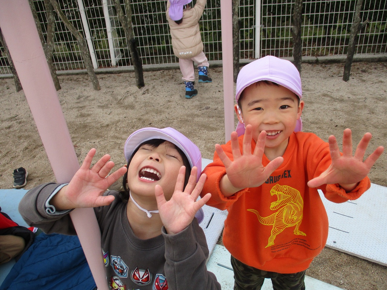 - 登り棒に挑戦中!「みて!てがまっかだよ~!」