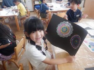 - スタンプを押して花束作り♡どんな模様になるかな?