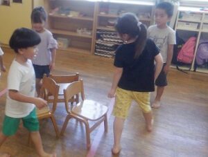 - いす取りゲームを楽しんでいます♪「音楽いつとまるかな?」