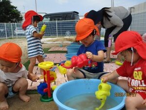 - 水遊び、楽しいね♪「お水、気持ちいい」